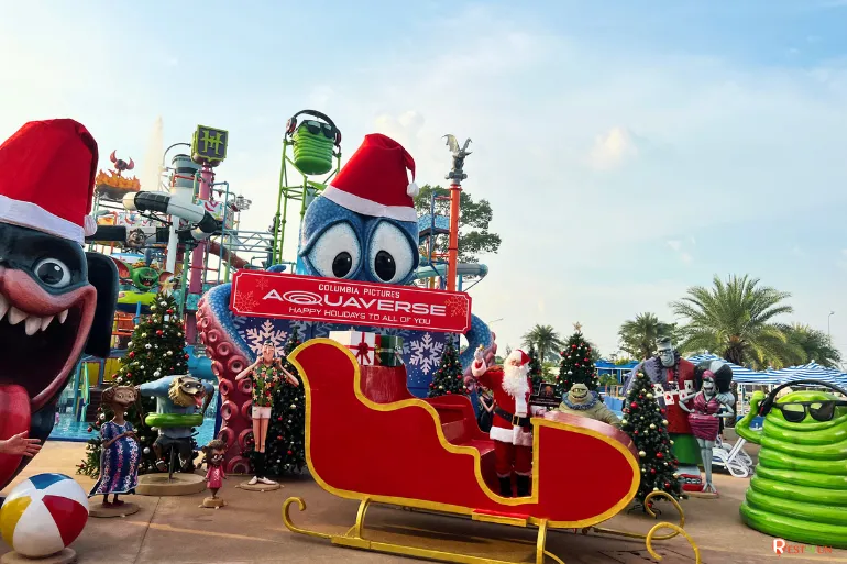 Columbia Pictures Aquaverse is located at 888 Moo 8, Sukhumvit Road, Na Jomtien Subdistrict, Sattahip District, Chonburi Province.