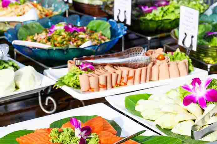 Thai and International food buffet, watch live music, and watch a Thai dance performance.